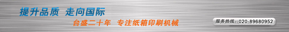 歡迎訪問(wèn)廣州臺(tái)盛紙箱機(jī)械有限公司! 收藏臺(tái)盛 在線留言 關(guān)于臺(tái)盛  中文版     ENGLISH